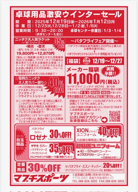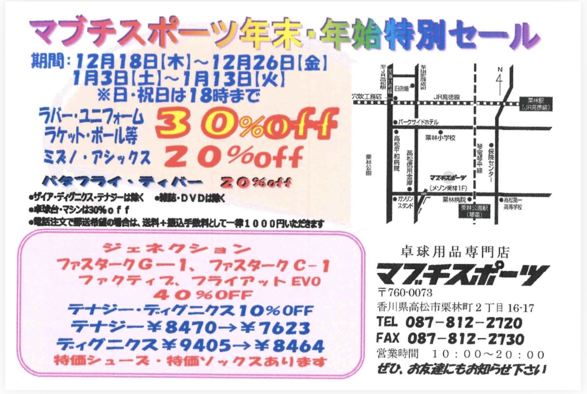 また、一部新製品ラバーの試打ができます。希望される方は、当店スタッフにお声かけ下さい。